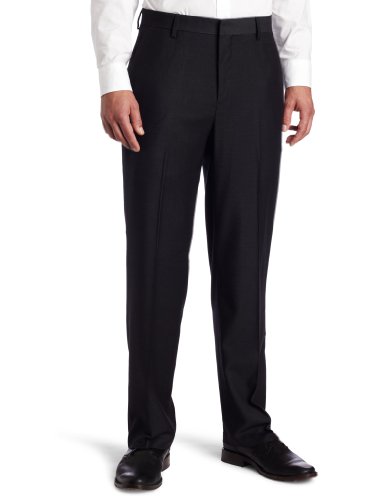 Kenneth Cole Reaction Men's Flannel Look Straigtht Fit Flat Front Dress Pant, Black, 42 / 30